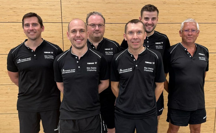 Die erste Mannschaft des TTC Landau in der Vorrunde der Saison 2022/2023 mit v.l. Mannschaftsführer Christoph Lichtenberger, Jürgen Damböck, Hans Kerscher, Nico Wiechert, Kai Mac Ilvaine und